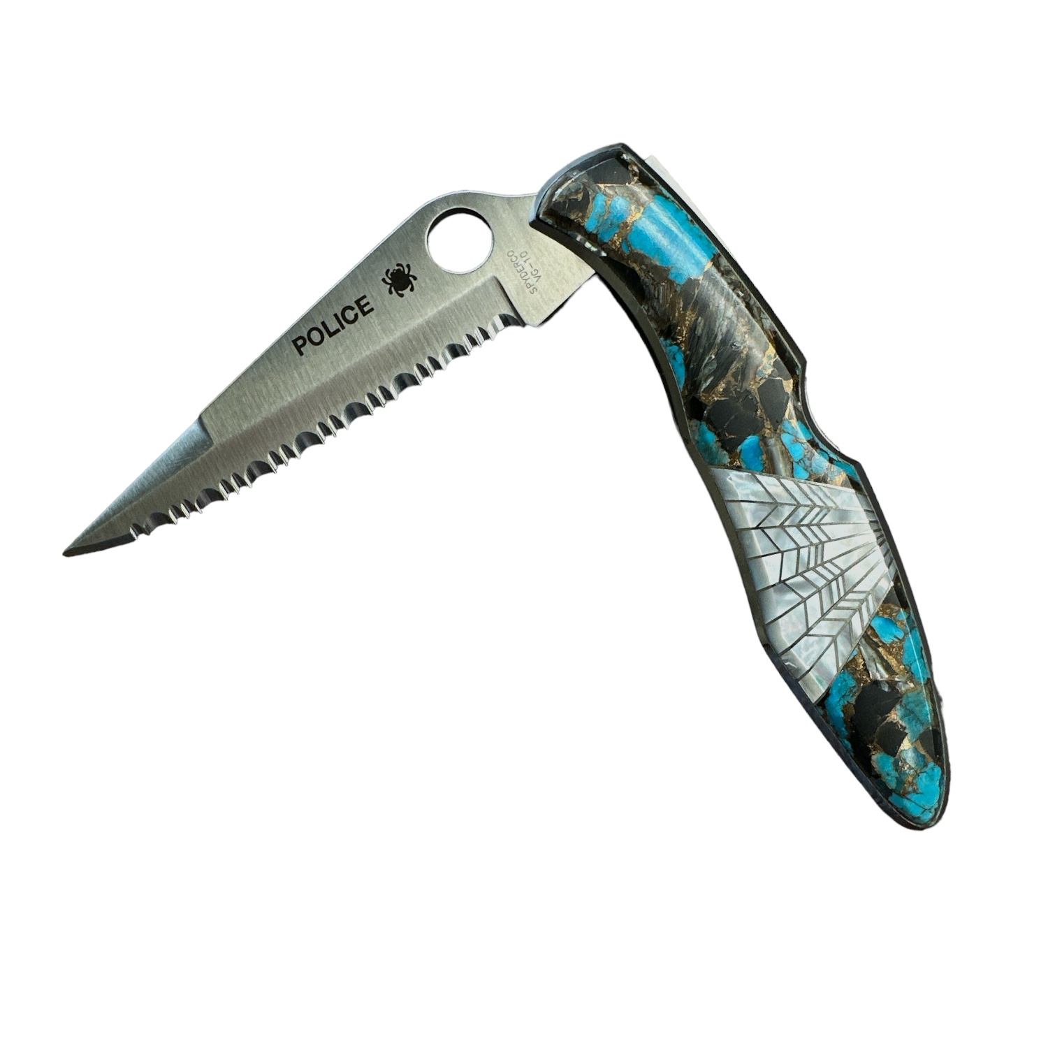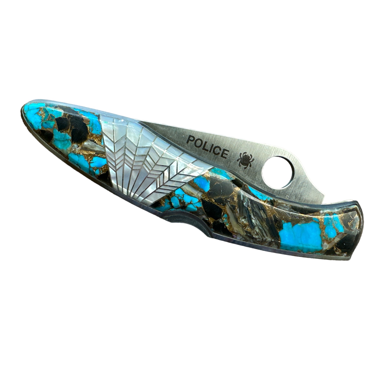 SPYDERCO Police Folding Locking Pocket Knife w/ MOP & Turquoise Handle