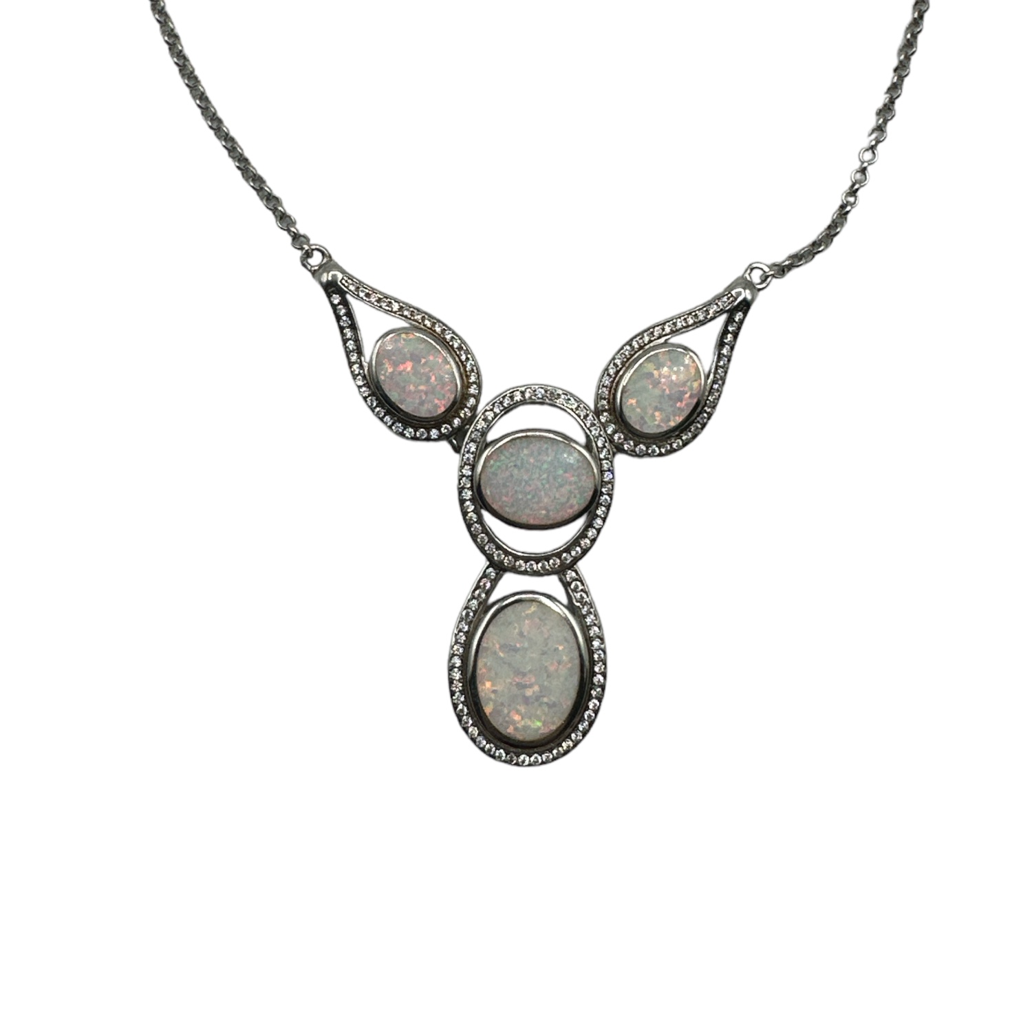 Sterling Silver & Opal 3-Station Necklace
