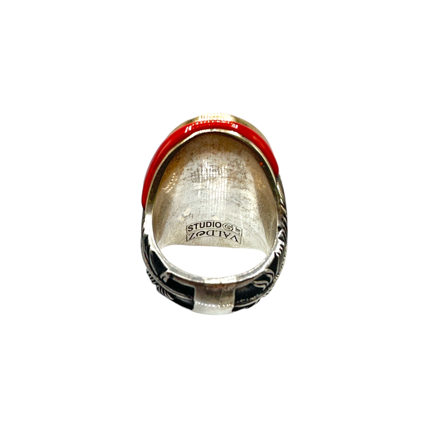 Studio GL Miller Heavy Gauge Sterling Silver & Coral Indian Head Men’s Ring – Sz. 10.75